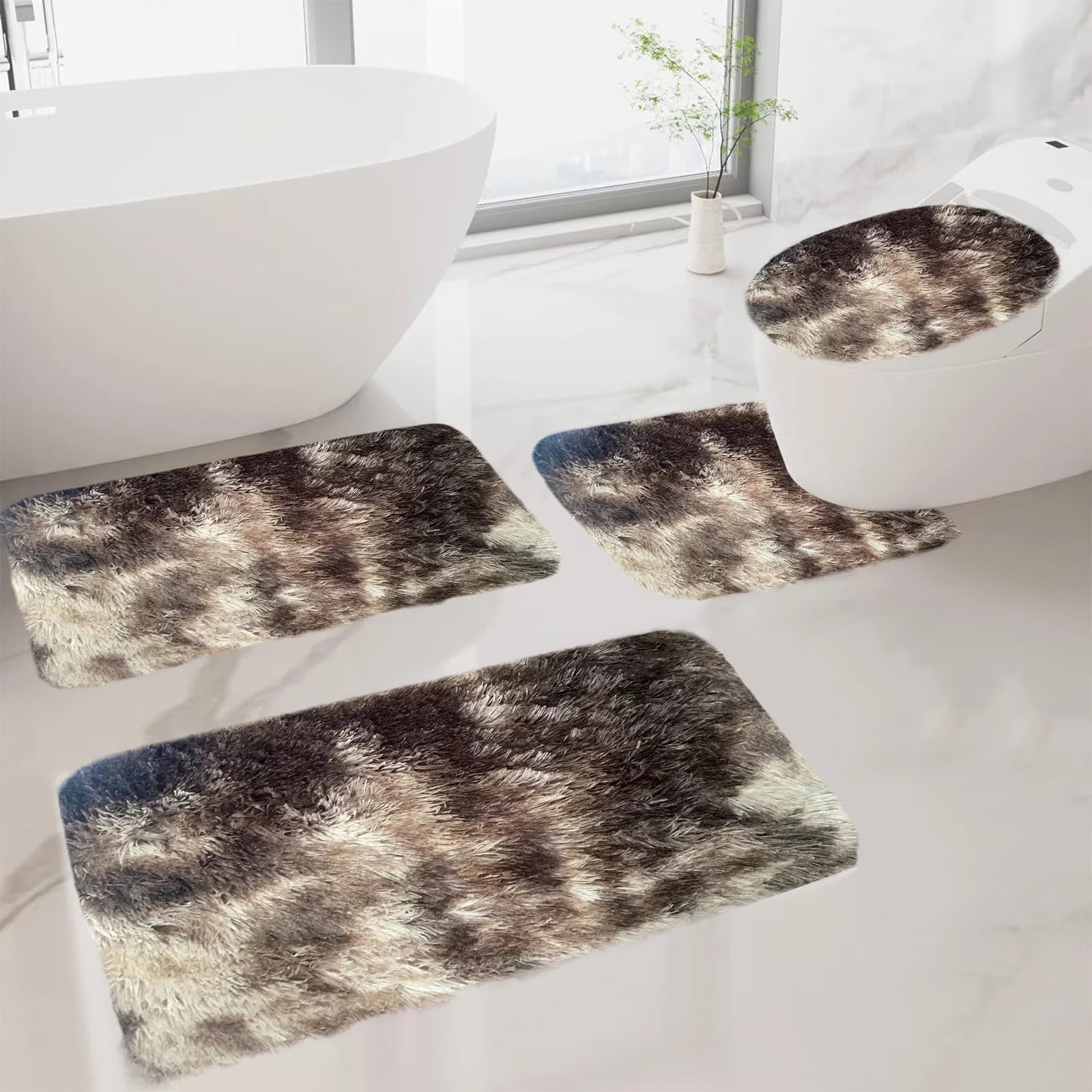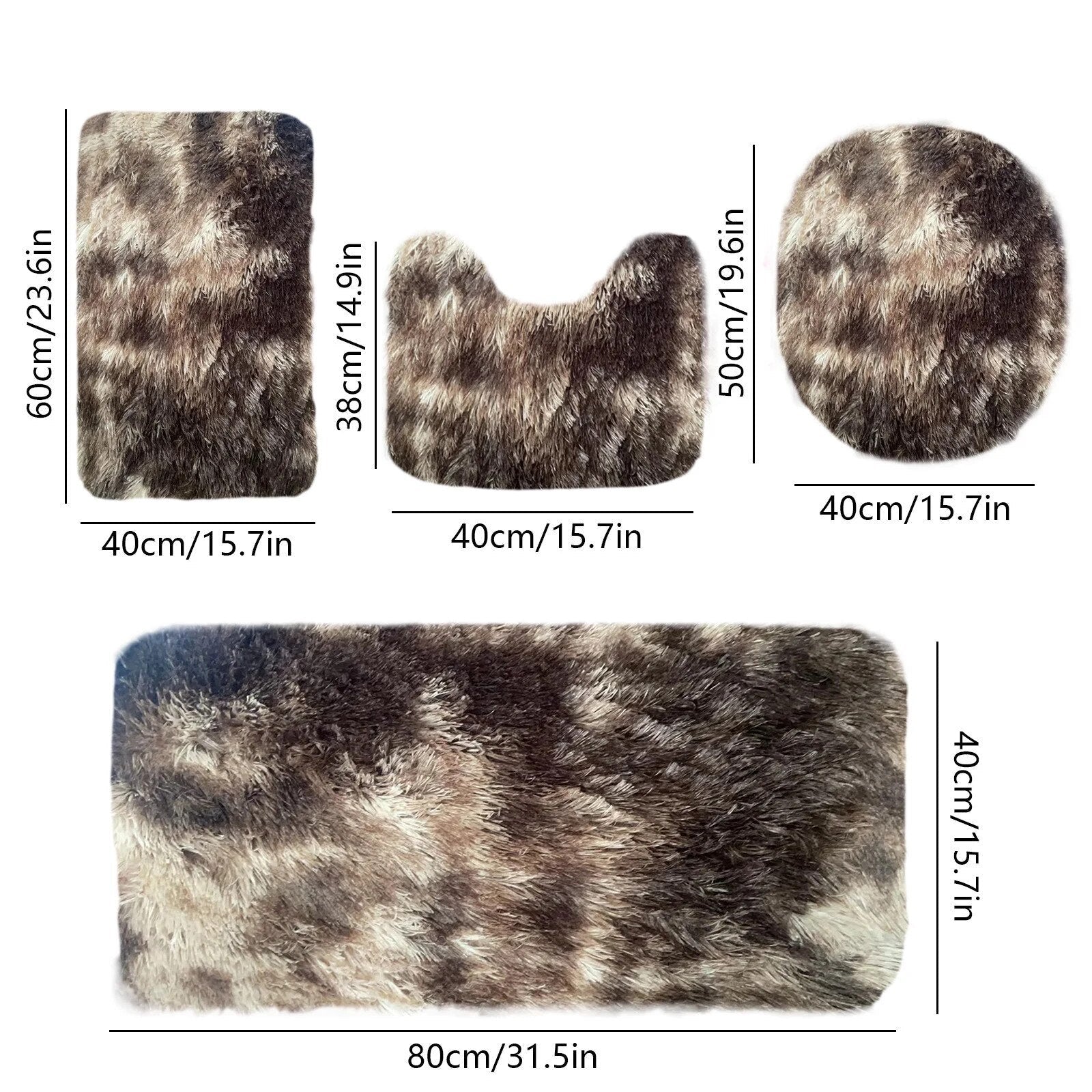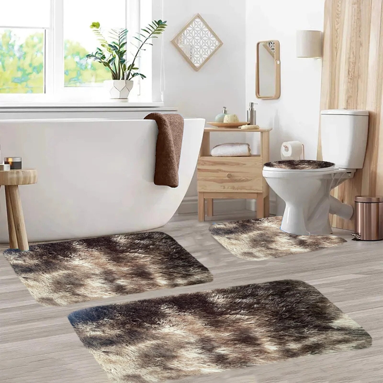 Set 4 Covorașe de Baie Antiderapante, material pufos, Maro