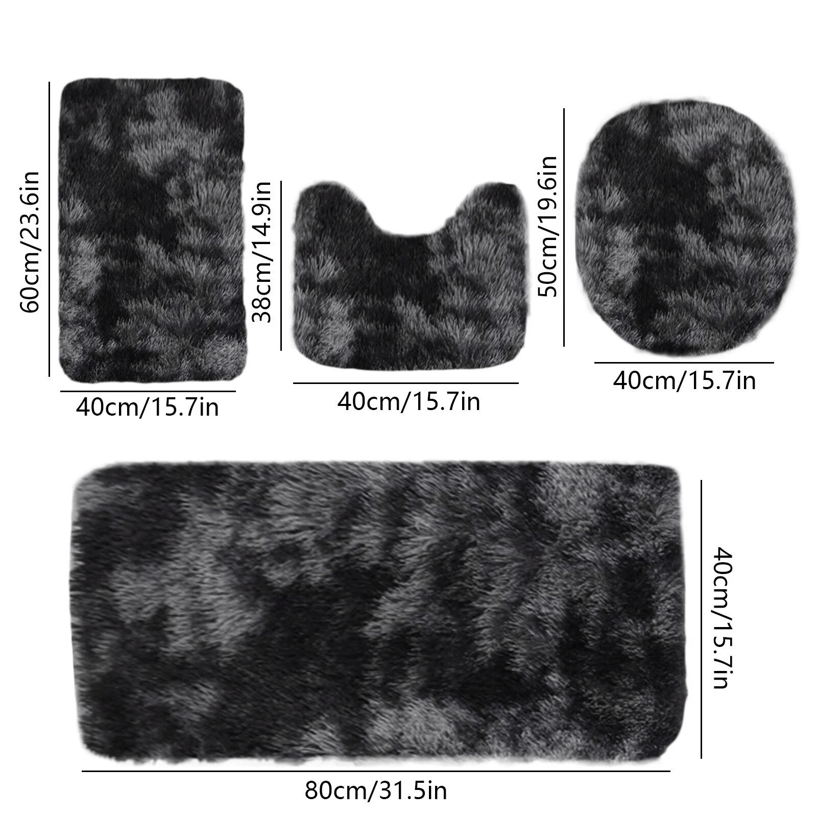 Set 4 Covorașe de Baie Antiderapante, material pufos, Negru
