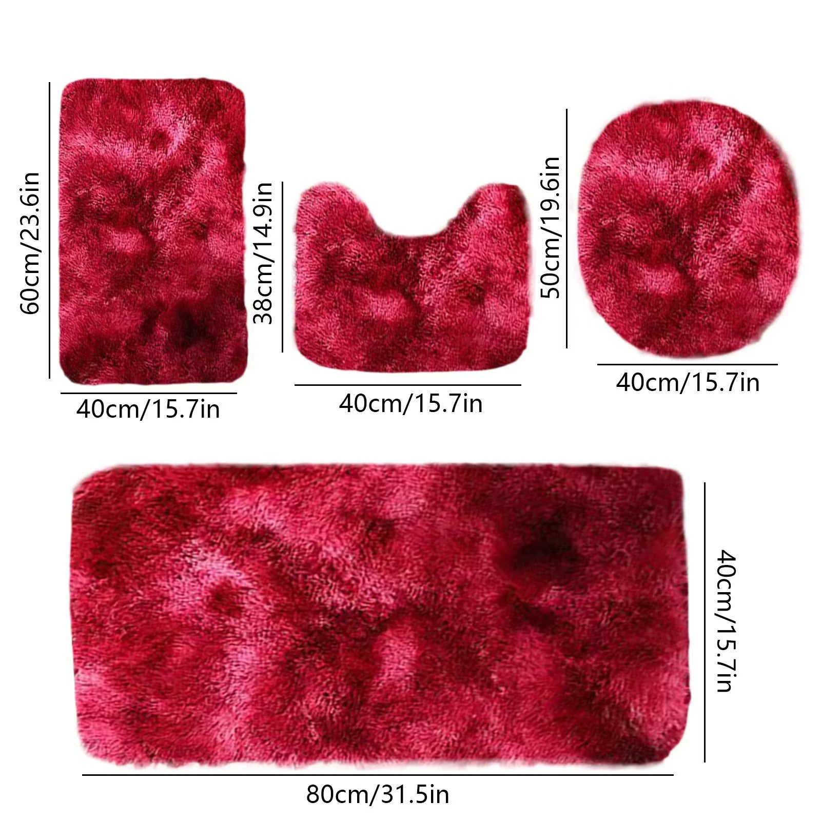 Set 4 Covorașe de Baie Antiderapante, material pufos, Roșu
